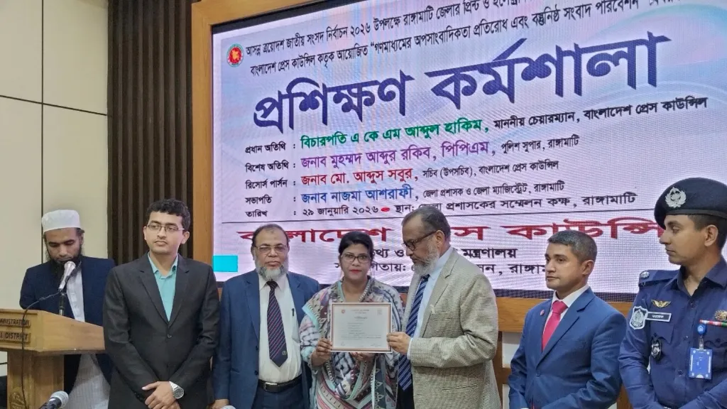 A training workshop on "Prevention of misreporting in the media and presentation of objective news" organized by the Bangladesh Press Council with the participation of journalists from print and electronic media of Rangamati district on the occasion of the upcoming 13th National Parliament Election 2026 has been held.