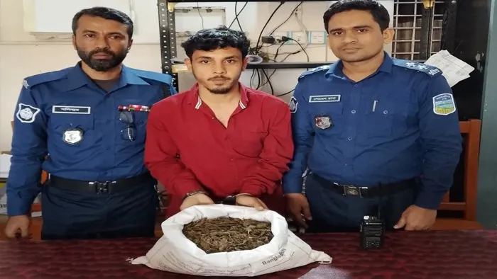 The arrested youth has been identified as Md. Rifat (26), son of Shahid Mia and Laili Akter. His permanent address is 49 Sarda Ghosh Road in Mymensingh city, police said. According to police sources, a special team of Kotwali Model Police Station conducted the operation following a tip-off. During the raid, Rifat was searched due to his suspicious behavior, and one kilogram of ganja was recovered from a polythene bag in his possession.